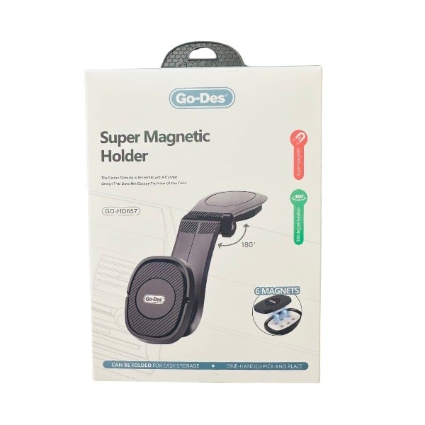 عند البحث عن حل لمشاهدة هاتفك بشكل مريح أثناء القيادة، يأتي Go-Des- ستاند جوال مغناطيسي للسيارة ماركة جو ديس م/GD-HD657 لتفادي مشاكل الوضعيات الغير ملائمة. فهو يجمع بين التثبيت الممتاز والعرض الناعم لتمتع بتجربة ساحرة أثناء السفر.