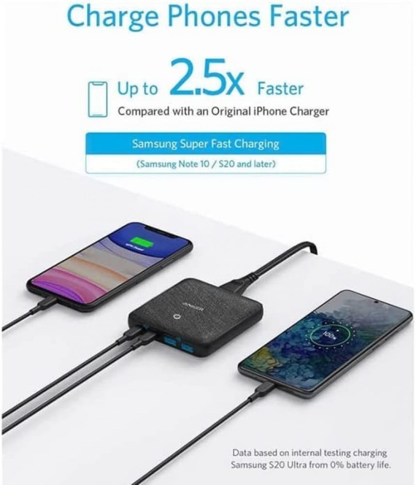 تعتبر انكر الخيار الأمثل لأولئك الذين يحتاجون إلى شحن سريع وموثوق مع ANKER - موزع شحن قوة 63W اربع منافذ سريعة - اسود - م/ A2045 -ماركة انكر اثنان منها من النوع C