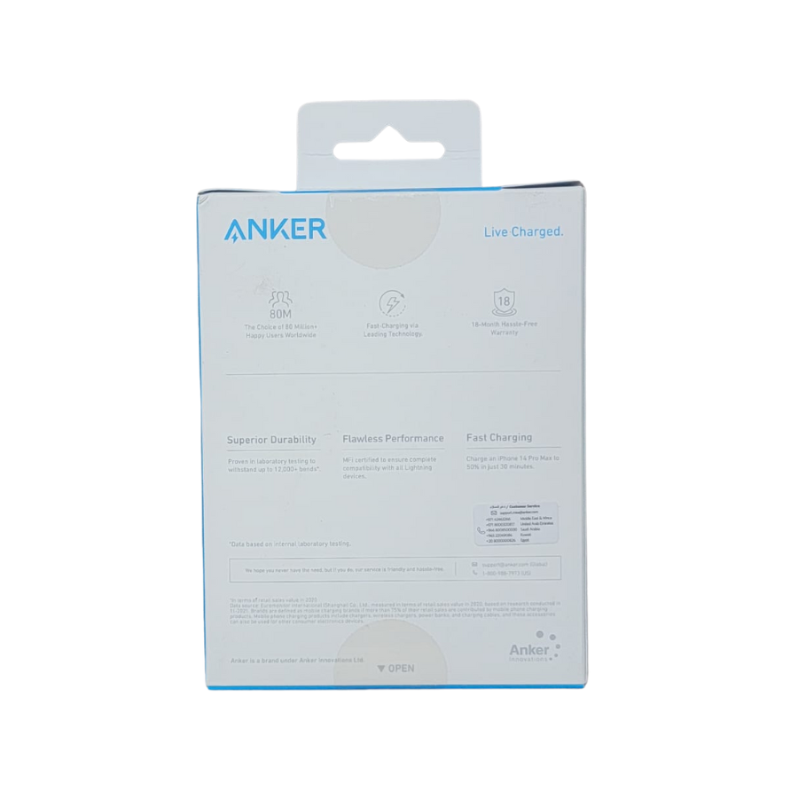 شاهد ANKER - كيبل شحن يو اس بي لايتنج 30 واط لون اسود- م/ A80B1 ماركة انكر