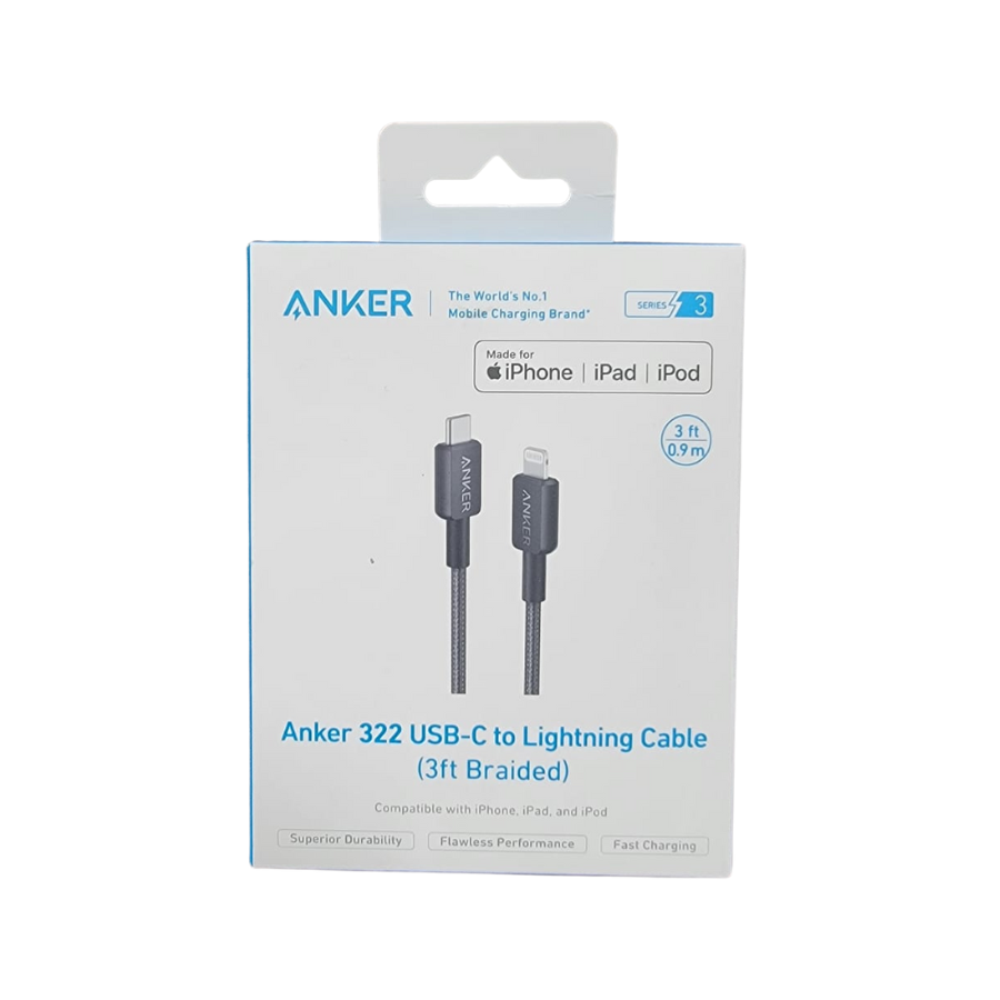 ANKER - كيبل شحن قماش 322 - من لا يتنج إلى تايب سي 90 سم - اسود - م/A81B5 ماركة انكر الحل الأمثل لشحن أحدث إصدارات آيفون.