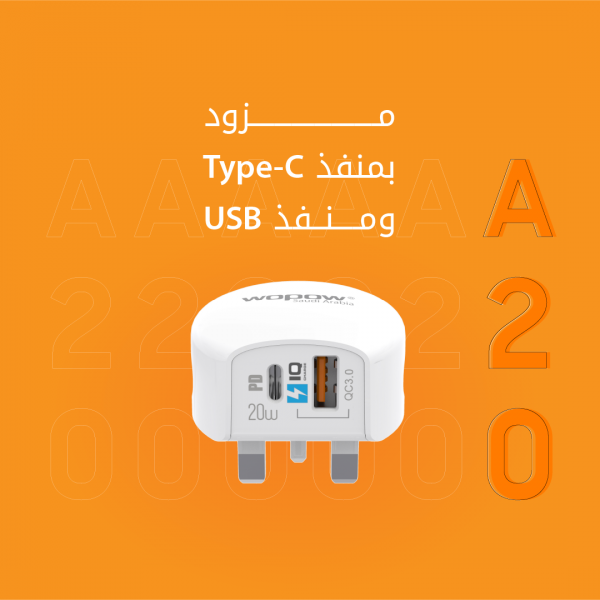 WOPOW -شاحن جداري منفذين بقوة 20 واط م/A20 ماركة ووبو