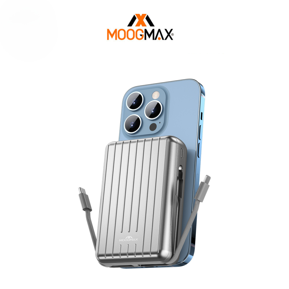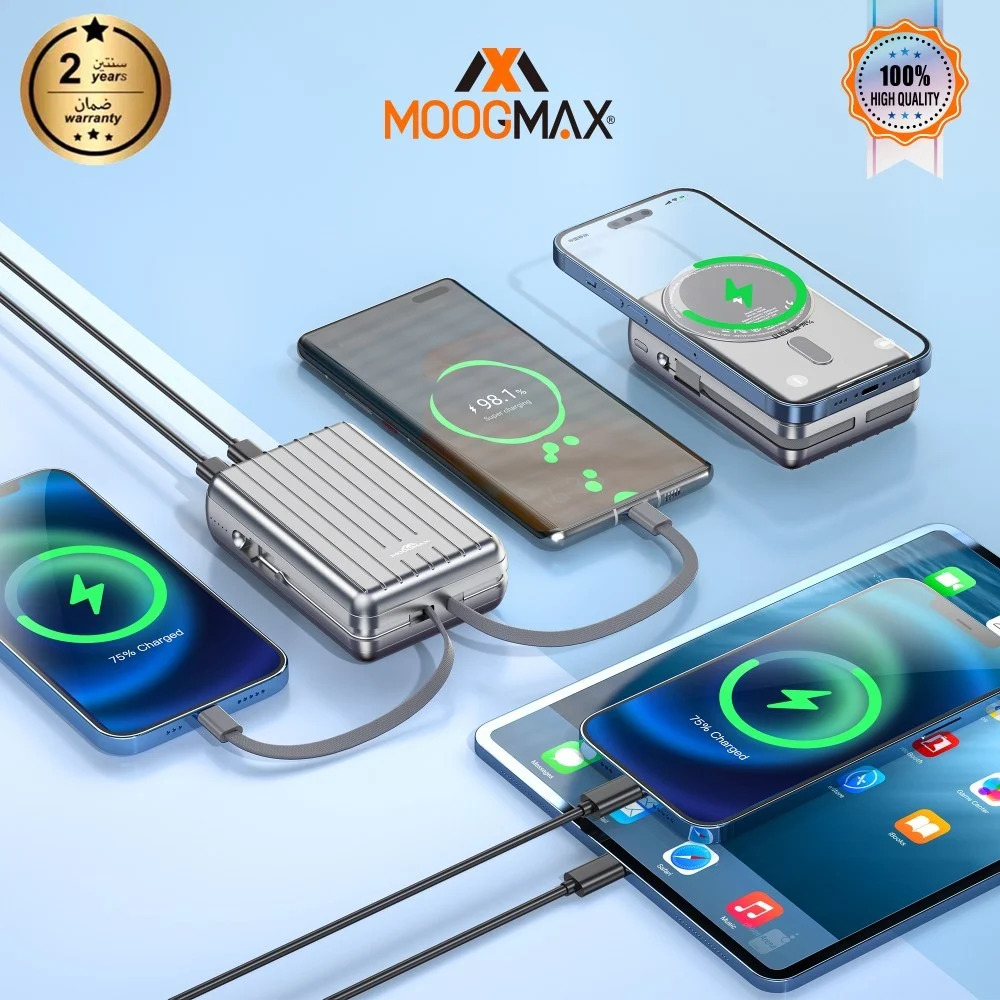MOOGMAX - باور بانك لا سلكي 20000M ا مع 2 كيابل مدمج بالاضافة الى منفذين م/MX219 SKU NO ماركة موج ماكس